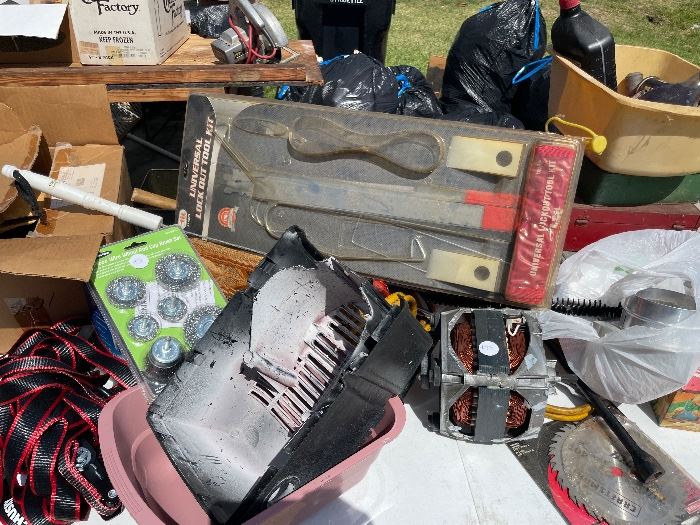 Religious items, quality tools, handmade ships, antiques, barrel chairs, Roseville pottery, and a house that is very loaded!