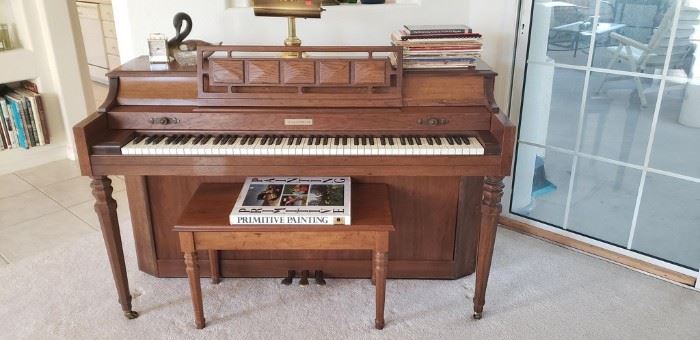 Contents Inquiries: Diana Minotti 386-237-3233 Living Room: Baldwin Upright Piano w Bench, Sitar, Cream Sofa, Burgundy Floral Wingback Chiar, Round End Tables, Pair Brass & Cream Stiffel Lamps, Brass Anniversary Lamp & Candlesticks Dining Room: Mahogany Queen Ann Style China Cabinet, Dining Table w 6 Chairs, Beautiful Buffet, China, Crystal, Kitchen: Metal & Glass Round Dinette, Bar Stools Black Metal, Snack Tray Set, Wood Tea Cart, LOADED Stoneware, Corning, Pyrex, Coffee, Toaster, Blender, Pots, Pans, Family Room: Sofa, Love, Chair w Ottoman, Coffee, Pair Cabinets, Pair Brass Lamps, Floor Lamp, Pottery Collection, Bookcases & Library Collection, Master: Queen Set: Pair...