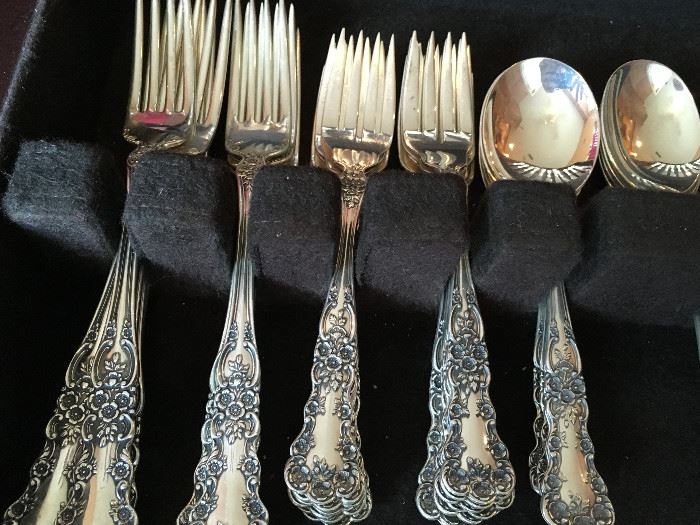 High end items. Oil painting by V. Koshay Brisette Fine Bone China Royal Doulton - Made in England Service for 8. Elegant Crystal stemware. China hutch with matching round table and chairs. 7 piece rectangle table and chairs. Book shelves. Twin bed Break front Desk Coffee table Vintage end tables Leather round ottoman Flat screen LCD Sony TV BOSE wave CD player and Multi CD player White Clad Pie Safe. Panasonic microwave Native tapestry rug Leather sofa Dresser and mirror Silverware by Gorham Sterling Buttercup Lots of stuff in the garage i.e. nails, screws, chaulk, paint, stain, tool boxes. Storage...