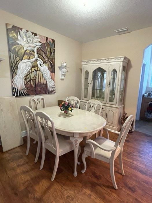 Please keep your tires off of the grass. Do not put your tires on the grass or block any driveways. This is a gated community and you will need to push a button to speak to the office and tell them you are here for the sale. This is a nicely decorated home. Leather Sectional Sofa and Loveseat Round Upholstered Ottoman / Coffee Table White China Cabinet White Wood Dining Table Set Wood Kitchen Table Set Lots of art Lots of decorative pieces Statuary TV stand 55" TV Smart 2 queen bedroom sets Bed, Mattresses, Dresser, Nightstand Dresser 3 misc...