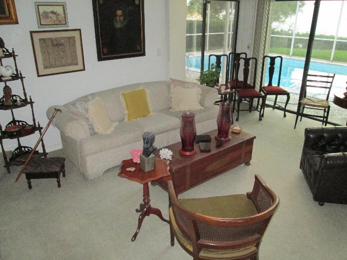 TOTAL ESTATE SALE 240 Driftwood Dr. SE, St. Petersburg 33705 Thu-Fri 9-3, Sat 9-1, March 12-13-14 The owners of this waterfront house have moved to a retirement home, leaving rooms full of fine 19th and early-20th century furniture, art, dining room, kitchen, garage and household items! All must go in three days, including: Antique and vintage furniture: Early English tall case clock; mid-19th century game/hall table and tremendous chest-on-chest secretary desk; mahogany and walnut dining furniture, nice small serpentine chest, leather top drum table, etagere, copper tacked/banded cedar chest, hard-rock open hutch on sideboard; floral painted 1940s John Widdicomb bed...