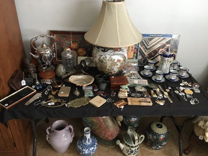 Items include- furniture, collectibles, vintage items, Murano glass, art, vases, nesting tables, bow front curio cabinet, lamps, camera, records, vintage Asian decor, tv, china sets, glassware, crystal, chairs, partitions, outdoor furniture, bakers rack, workbench, dolly, dollar items, kitchen items, planters, pavers and everything in between!