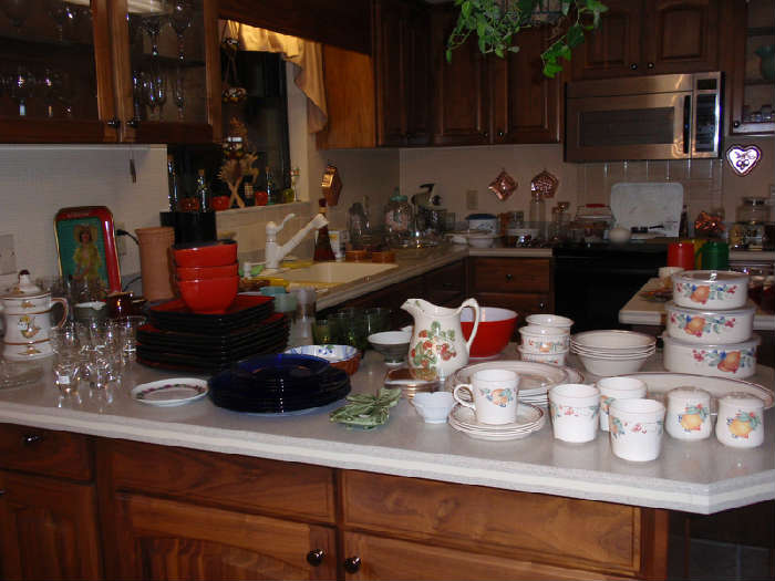 Pictures will be available on Monday evening after 8:00 p.m. as we are still working on this estate. Our client has just moved into a retirement community and has left behind many wonderful items. Furniture: Riverly House sofa w/matching love seat, Sleeper sofa, large 50's coffee table, matched pair of club chairs, large wooden rocker, small round marble top accent table, several other occassional chairs, full size Maple headboard/footboard w/matching dresser. Full size matress & box springs, Bookcase, Desk, Office chair, antique dresser, and more... Lots of home decor and accessories to include 1950's Pickard China, Royal Worchester China, Bradford...