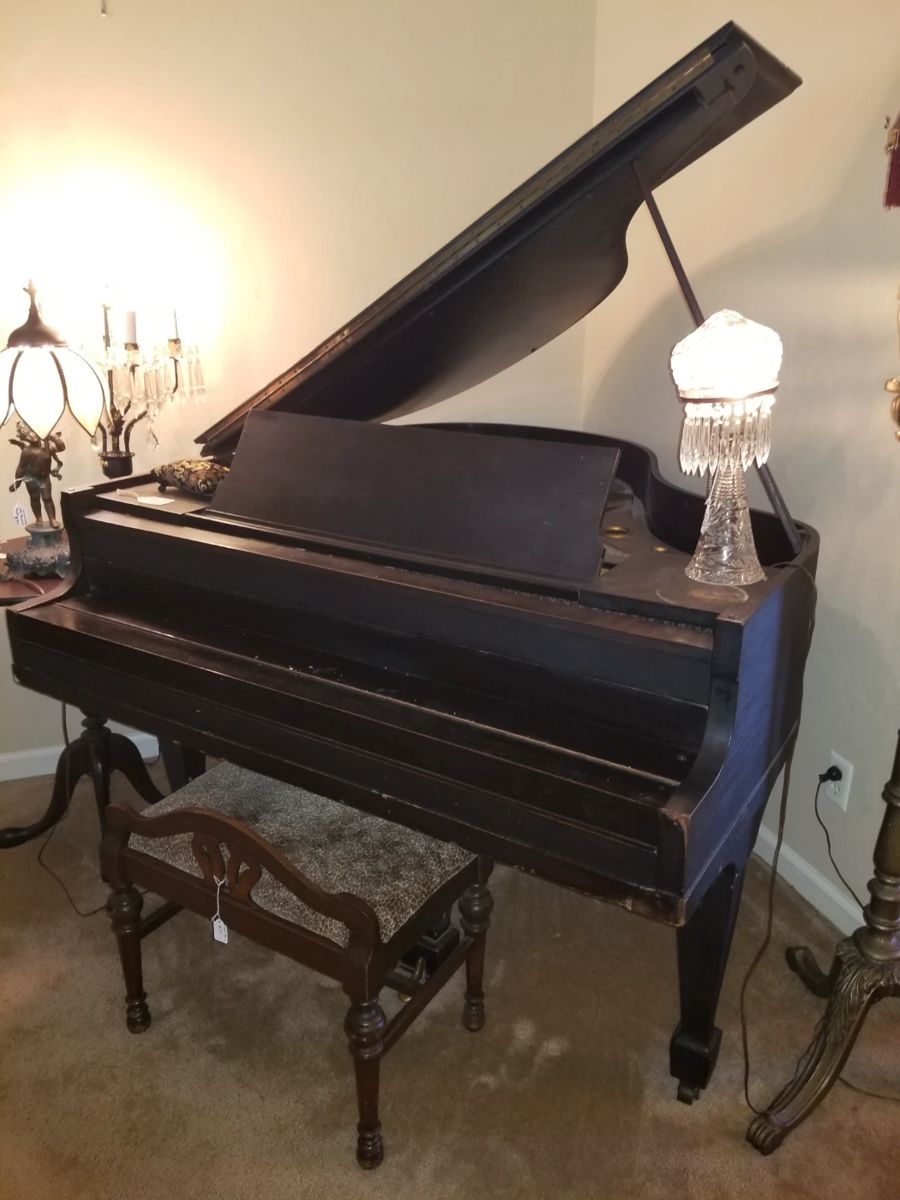 Greetings! We are back with a large 2-storie house with a large garage full of a large range of beautiful antiques! Pre-ale hours will be Monday- Wednesday Sept 8-10 from 2:00-6:00 PM. First we feature a beautiful vintage De Koven baby grand piano that sounds wonderful, tuned to play, ready to carry home! We have a variety of fine furniture - 5 beds ; a brass queen size bed, a vintage very nice brass single and a wrought iron single bed, a white metal twin, also a very old heavy brass bed with frosted etched glass featuring seagulls mounted in...
