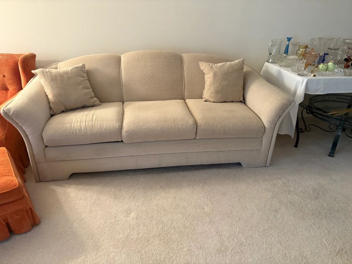 THIS HOUSE IS COMPLETELY LOADED!!!!!!!!!! 18 Old Clocks, Kitchen Drop Leaf Table with 4 Chairs, Tea Cart, Pictures, Dining Room Drop Leaf Table with 6 Chairs and 1 leaf, Hutch, BEAUTIFUL Queen Size Sleeper Sofa Bed Couch, Glass Top Coffee Table, 2 Chairs, Cabinet, Chair with Ottoman, 2 -2 Drawer Cabinets, Desk, Patio Table With 4 Chairs, 2 Patio Chairs with footstools, Small Round Table, Folding Wood Table, Hundreds Of Hangers, Antiques, Yellow Love Seat, Small Table, Lamps, Mirrors, Queen Bed with Headboard, Box Springs, Beauty Rest Mattress, Dresser with Mirror, Chest of Drawers, 2 Night Stands, Lazy Boy Love...
