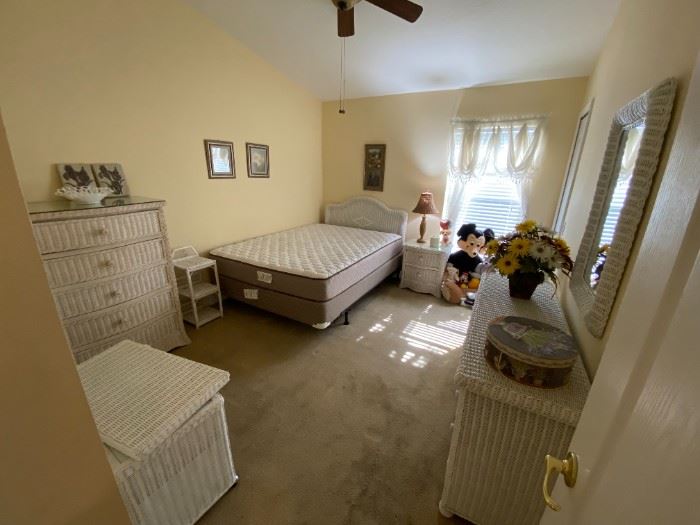 Another beautiful Trinity home in the Heritage Springs neighborhood. A gated community, so simply tell the gate attendants that you are attending the estate sale. Have the address ready. Beautiful white wicker bedroom furniture. 10 piece set. King size bedroom set, which includes bed, dresser, 2 night stands. Some really nice art pieces. One by Augusta Asberry, signed and numbered. Leather sofa and love seat (showing wear), coffee table and two side tables 49" TV, Pioneer receiver and Aiwa CD player (5) 45 RPM Records with vintage holder, pristine 1953 calendar and vintage Jell-O advertisement book English Tea Cups, China,...