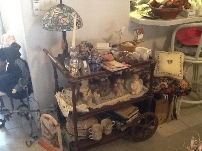 This house has the most stuff we have had all year... Lots of stuff all sorts!!! There are lots collectibles, few antiques, tons of kitchenware, glassware, China, real nice lawyers bookcase, 5 piece queen size bedroom suite broyhill, kitchen round top glass table /4 chairs, day bed, 1 twin size bed, antique tea cart, Midcentury dropleaf table/ 1 dropleaf end table, some women's vintage clothing, linens, doilies, Lots,Loy's of arts and crafts, sewing material, sewing machine, tools, garage filled with hardly no room to walk with misc items from A to Z, all holiday decor, christmas trees, Roll top desk,...