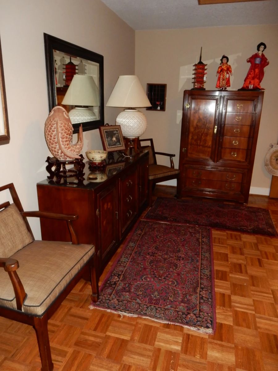 Beautiful Architecturally designed home, with modern furnishings to Antiques and Oriental. This Client has been a Customer of ours for many years, she has collected many beautiful pieces over the years and the home has a totally cool house layout & floorplan. Home is For Sale, Real Estate Agent: April Spalding Phone # (863) 777-0074 Highlights: Estate Jewelry, Fine & Costume, sterling Aspen Furniture 5 piece wall display suite Glass top table w/ 5 chairs Corner glass front ebony laquered display case Duncan Phyfe Mahogany Large Pie Crust table Mahogony Secretary drop front desk w/ claw feet Bernhardt co, Tall...