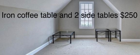 Furniture to include: Bassett Sofa, Chair, glass coffee table, and 2 metal/glass top side tables Lane brand formal dining table, cabinet, and Buffett/sideboard Kitchen dining set-glass table with 4 chairs Outdoor patio set 3 iron tables with glass tops-one Coffee and two side tables King size Sleep Number I8 series bed solid wood headboard with leather front talk back wood chair low profile Table with two stow away bins(IKEA) wood wall mirror 3 piece art set Thomasville 3 piece shag rug set(Grey) Turkish style 4 piece rug set(Brown/beige) Beauty rest King size mattress other smalls, kitchen glassware
