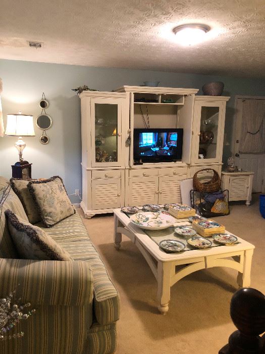 WELCOME TO BEE'S KNEES ESTATE SALES! Wow! This is a fun sale. Full of magic and whimsey. Do you like beautiful things? You should SEE the lovely inventory here! We have plush bedding, queen size iron bed, gorgeous Havertys, Ethan Allen and Broyhill furniture in excellent condition. High-end armchairs, ottomans, computer desk and hutch! Lots of exquisite crystal wine glasses, goblets and highballs. Wine rack, a BAR STAND (my favorite thing). We have a Whirlpool Washer and Dryer! Antiques galore! Armoirs, vanities, mirrors, chandeliers -- you have to check it out! We have patio furniture with cushions, plenty of modern...