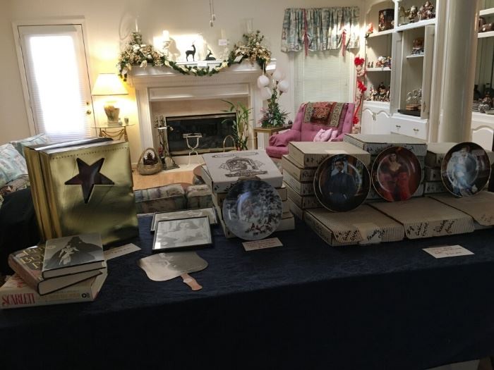 --"GONE WITH THE WIND" COLLECTOR PLATES,BARBIES AND SCARLET OHARA DOLL AS WELL AS FRAMED PICTURES