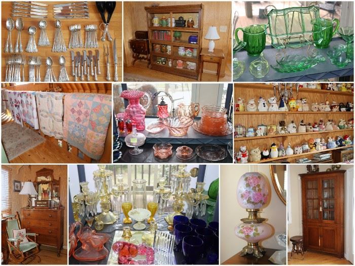 This Lookout Mountain sale contains a monumental collection of antiques, vintage collectibles, and local memorabilia. This gorgeous mountain property holds three structures packed full of quality items. The main residence has two stories full of elegant glassware, kitchen collectibles, Lookout Mountain and other local memorabilia, a collection of sterling silver and silverplate, fabulous antique lamps, fine antique furniture, and finally one of the most extensive collections of Heisey glassware you’ll ever see! The second facility on the property is known lovingly as “The Cookie Jar House”. This guest house is unmistakably packed with over 250 vintage cookie jars that soar...