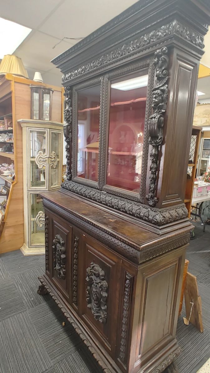 Liquidating the contents of a closed antique store. The sore has been closed for close to two years and the new owner of the building is motivated to liquidate EVERYTHING including the vault door! All display cabinets, shelving and fixtures are for sale. There is too quality glassware from Fenton, Fostoria, Roseville, McCoy, Hull, Hall and much more. Tons of delft blue and white, chinoiserie, Goebel figurines, cut glass and crystal, framed artwork, antiques, architectural salvage lamps, lighting and shades, vintage toys and Barbie dolls, tea pots and tea sets, tableware and so much more!