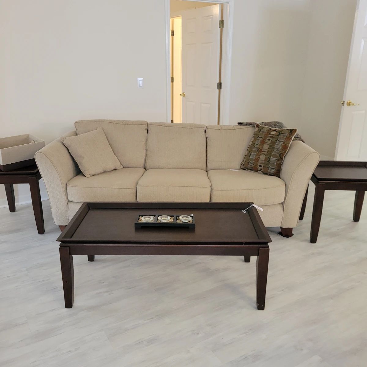 Sofa, indoor and outdoor table sets, side and coffee tables,refrigerator, beds, linens, towels, kitchen items and home decor.
