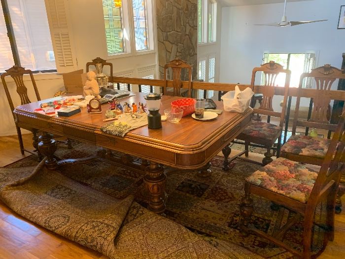 Lots of antiques/mid-century to include dining set, dressers, headboard, armoire, artwork and outdoor furniture etc.