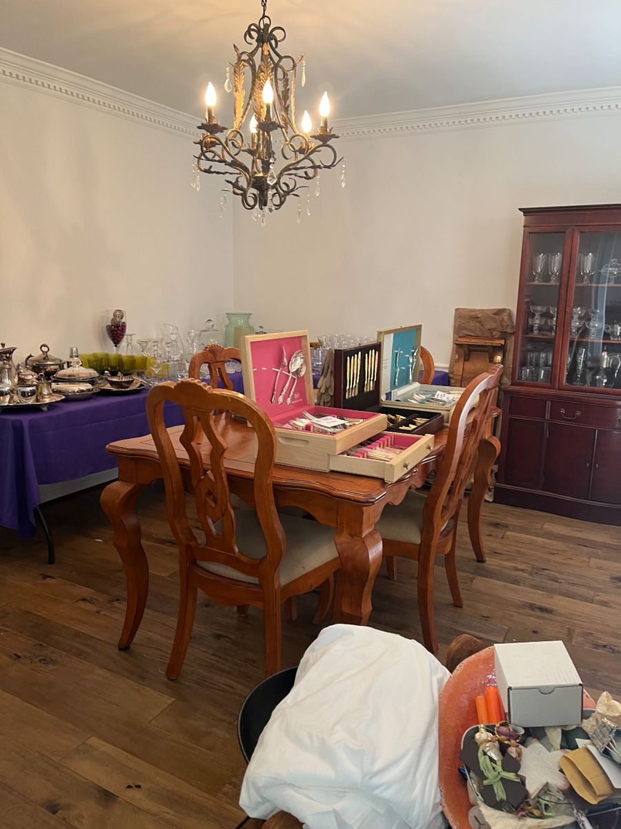 Fabulous Sale in Peachtree Corners. House full of items for Bedrooms, Living Area’s, Dining, Kitchen, Bath, Patio, Garage with all the furniture, décor and household items you would expect. MANY cool, vintage items from the 50’s, 60’s, 70’s to current. King and Queen Bedroom Sets – Nightstands, Dressers, Mirrors Twin thomasville Green Couches Several Vintage and Unique Occasional Chair Sets some rock. Caneback mid century Stakmore folding chairs and card table. Vintage West german faucets and Fixtures brand new Tools Cloths Purses Michael kors Nordstrom coach Perfume chanel 3 Dinng / Kitchen and Chair Sets – From Formal Dining to...