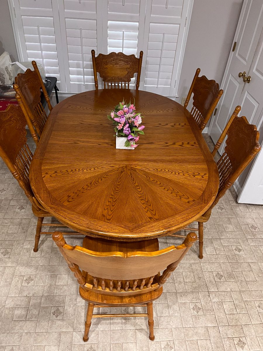 - Large oak dining room table