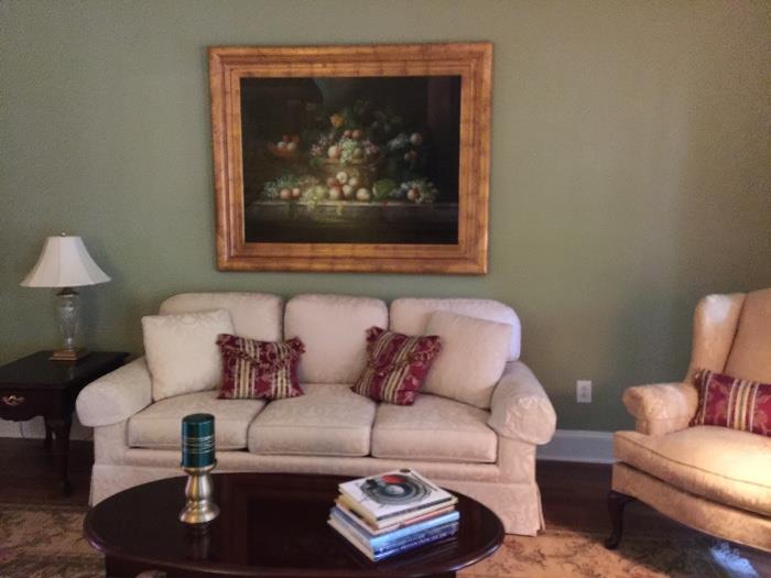 This is going to be a great sale!! We have some beautiful furniture in near mint condition: Please scroll down the page to see complete description. Including: Sligh grandfather clock works great Beautiful Cherry Thomasville Queen Ann Style Dining room table and chairs with matching china cabinet and server. Lovely sofa and matching chairs with beautiful oil painting and window treatments also for sale. Bedroom furniture includes full bed chair with matching window treatments and lovely chair. Additional matching sofa, love seat, and matching curtains. Outdoor furniture Safe Large collection of beautiful Waterford Crystal!! Also not shown is complete collection...