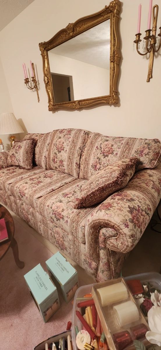 Glassware, Collectibles, brass, dolls, DVDs, adjustable bed, sofa, chairs, motorized chair, medical equipment. Christmas decor, bird cage and accessories.  Dining room table.  Washer and dryer, refrigerator.