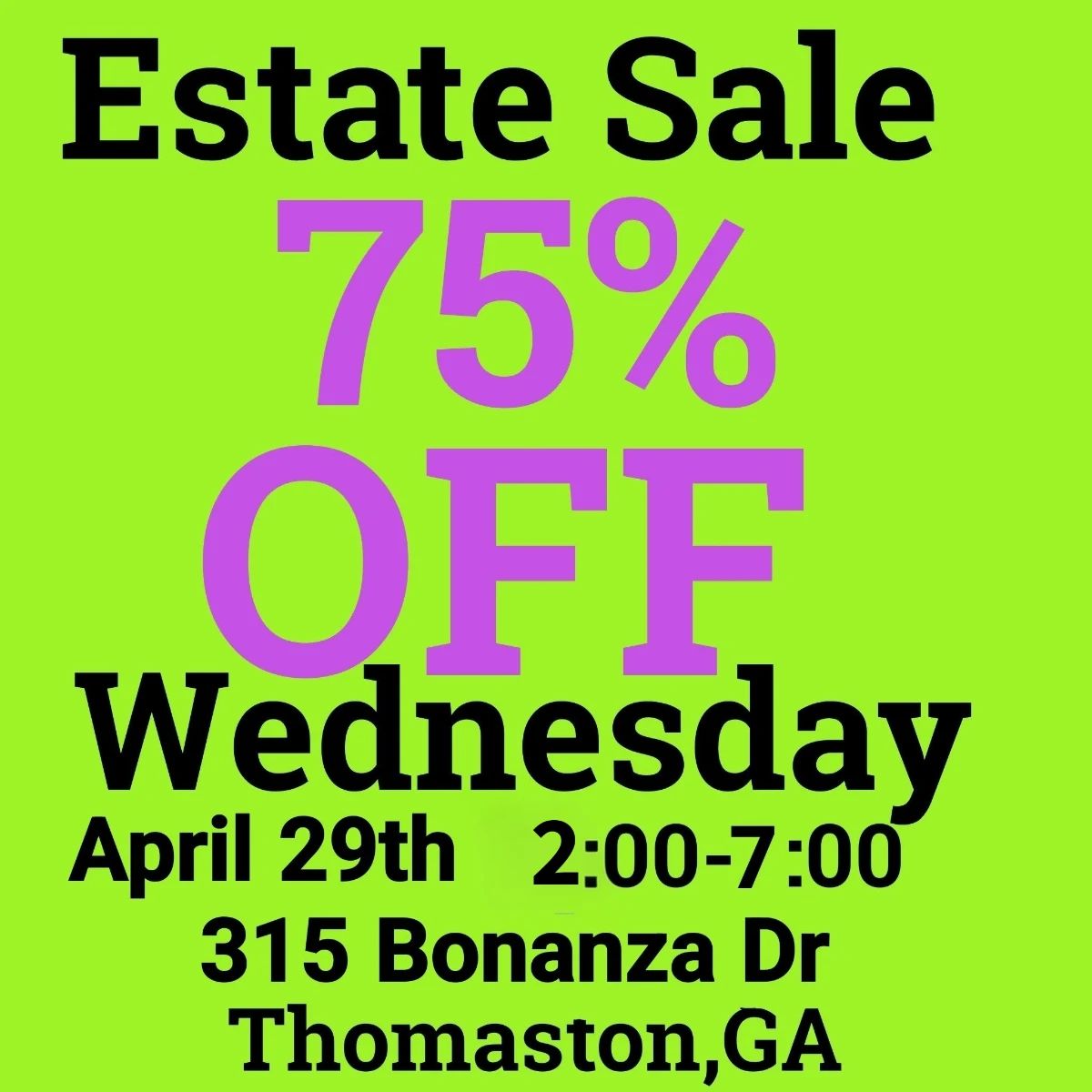 75% OFF WEDNESDAY ESTATE SALE! COME & GET EVERYTHING!