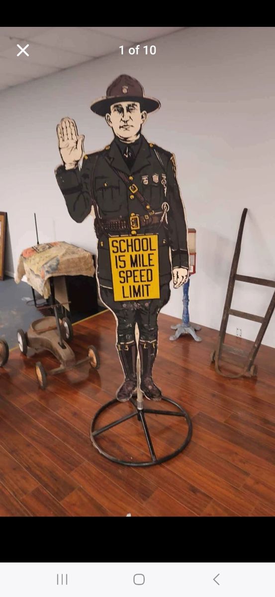 1939 West Virginia State Patrol School Zone Display (20 Known) Early Tin Toys (1915- 1950's) 1920's Early Resto 10 Gallon Fry "Mae West" Visible Gas Pump (Lexan Cylinder) 1920's early resto G & B 10 gallon Visible Gas Pump original accessories. 1953 Harley " Hummer" Motorcycle. All original. Engine is not frozen up. Does need work. Rare 1950's Edsel Dealership Advertisement Petroliana items Advertising items Display Cases Vintage Boat Motors Vintage Traffic Lights ( Crouse Hinds) Pedal Cars Vintage Wood Advertising Boxes Vintage Fishing Gear Railroad Lanterns Vintage Sleds Vintage Toy Trains & Accessories Many other vintage items