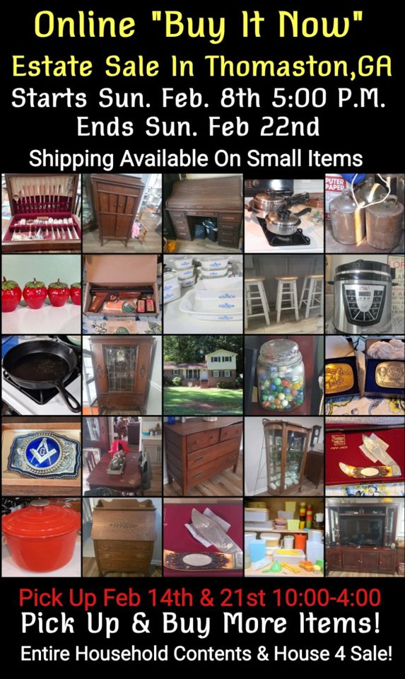 "BUY IT NOW ESTATE SALE"-PICK UP & BUY MORE! ENTIRE HOUSEHOLD FULL! THOMASTON,GA. We Ship!