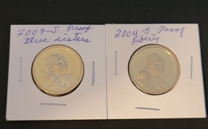 Sacagawea $1 Proof Coins (2009 S & 2004 S), Sacagawea $1 Proof Coins (2001 S, 2002 S & 2008, 1995 S "Silver Proof" Washington Quarter, Susan B. Anthony $1 Proof Coins (1979 S & 1981, 6 War Nickels (35% Silver), 9 War Nickels (35 % Silver), 1943 S Jefferson Nickel (MS-65 / Ungraded), 2 Jefferson Proof Nickels (1995 S & 2000 S), 9 "Proof" Kennedy Halves (Various Dates), 6 "Proof" Kennedy Halves (Various Dates), 1964 "Uncirculated / Silver" Mint Set (Denver &, 1968 "Uncirculated" Mint Sets (2) Kennedy Halves, 1969 "Uncirculated" Mint Sets (2) Kennedy Halves, 1970 "Uncirculated" Mint Set...