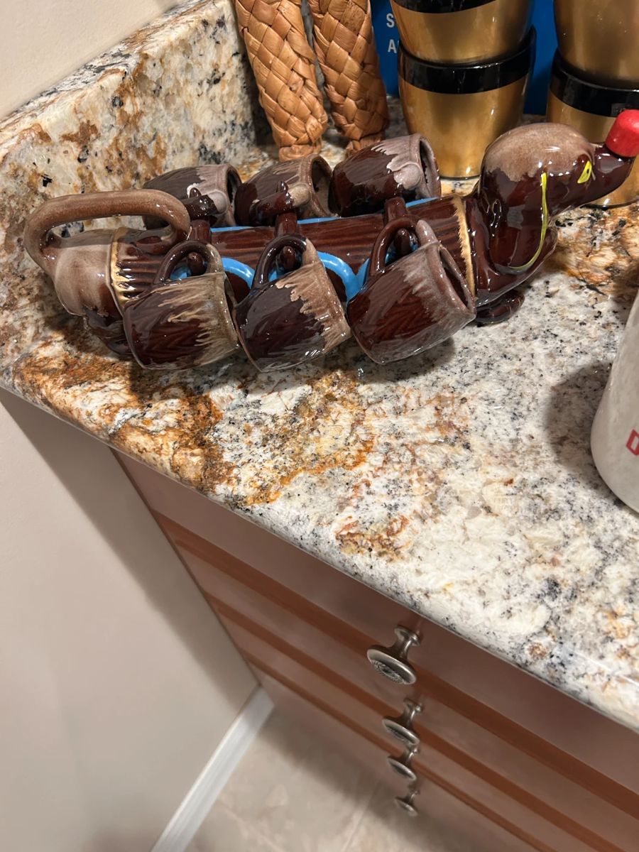 dining room set, hutch, server, large Satsuma ginger jar, large Dresden figurine, 3 other large figurines, Tiger statue, other large animal figures, pair elephant prints, glass and metal end tables and coffee table, Goods occasional chairs, sofa, mirrors, candlesticks, artwork, jewelry, rugs, lamps, table and 4 chairs, rattan porch furniture, cut glass stemware, old games, bed, dresser, cabinet, night stands, linens, clothing, shoes, purses, plants, cello, display cabinets, desk, pens, books, recliners, grandfather clock, records, sectional sofa, sets of dishes, dolls, cedar chests, lots of brand new cookware(still in boxes), coats, blankets, electronics, Christmas items, sets of silverware, rose quartz...