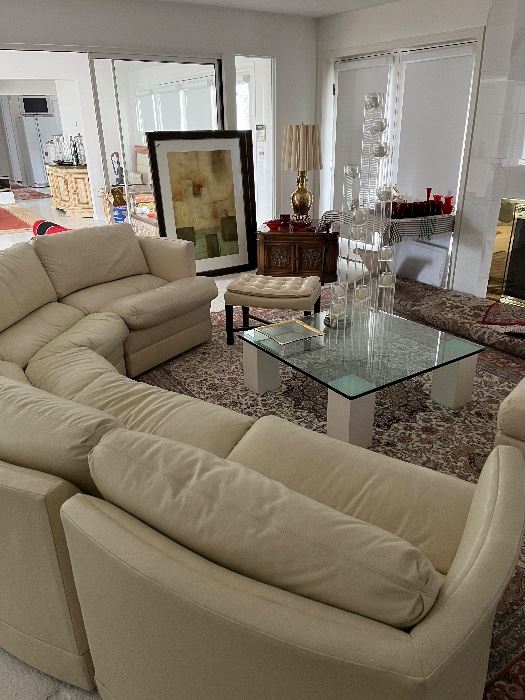 This lovely home is a very stately residence. Beautiful items throughout the home. Living room: has Heritage white leather sofa and oversized leather chair with ottoman. Room divider with inlaid Mother of Pearl, Oriental Rugs, end tables, and vintage toys, Red glass and china set. Kitchen and dining area: Vintage Mikasa dishes, Lenox china, kitchen aid, vintage glassware, pyrex dishes. bakeware and round dining table and four white upholstered chairs. Front sitting room: Gold room divider, Two white loveseats, four ottomans, side tables lamps, lamps and vintage Christmas. bedroom 1: Fur coats, wool coats, vintage clothing, mens Ralph Laureen sweaters,...