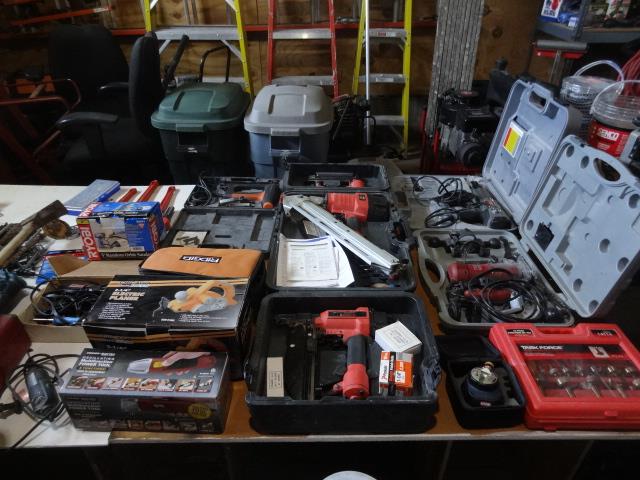 TOOLS- generator, compressor, riding lawn mower, power saws, commercial fans, shop vac, drills and bits, sanders, ladders, tool boxes, wrenches. Many multiples of all types of hand tools and supplies for plumbing, electrical, carpentry and painting. Many never used. Shelving units, garden tools, hoses, and more. ELECTRONICS- 27" computer screen, keyboards, printer, scanner, Wii Fit, Nook, Neat Desk, iPod. Vintage stereo system, slide projector, cameras. Window air conditioners, fans, clocks, radios, and more. KITCHEN- Keuring Brewer, SodaStream, Magic Bullet, juicers, steamer, Mr. Coffee, blenders, George Foreman Grill, microwave. Dishes, silverware, cutlery, glassware, pots & pans, bakeware, and more. FURNITURE- Lazy...