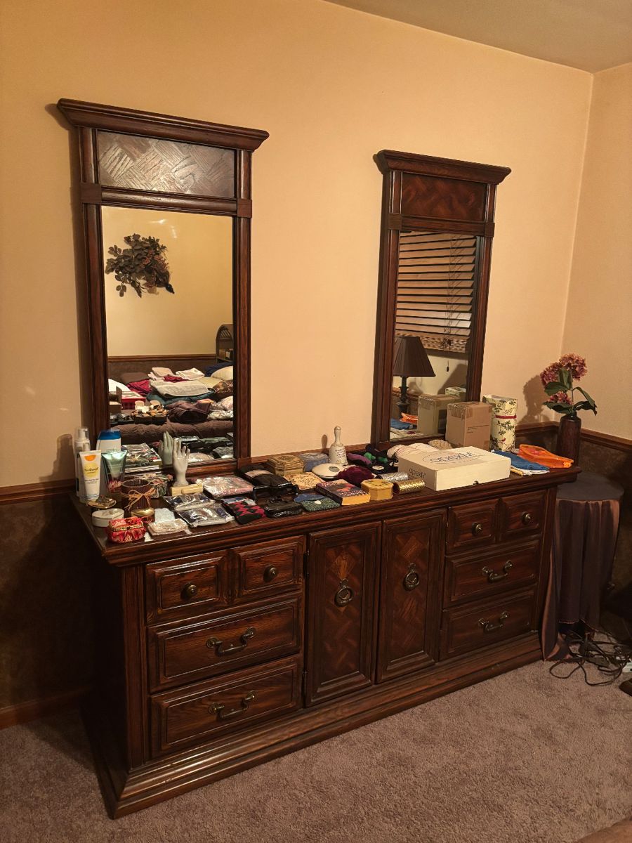 Women’s Clothing & Shoes, Wrapping Supplies, Linens & Towels, Bed W/ Frame, Wicker Shelf, Wall Art, Dresser W/ Mirrors, Night Stands, Side Tables, Table Lamps, Kenmore Sewing Machine In Table, Misc Fabrics & Cuttings, Dresser Cabinet, Hi-Lo Double Up Slot Machine - Has Parts - Unsure If It Will Work, Dressers, Ironing Board, Microphones, Cassette Tapes, CD’s, DVD’s, VHS’s, Sewing Supplies, Quilt Rack, Oneida Flatware Set, Women’s & Men’s Sanitary Products, Storage Containers & Bins, Cleaning Supplies, Beauty Products, Step Ladder, Dining Room Table W/ 6 Chairs, Buffet Storage Cabinet, Wall Tables, China Set, Dinnerware, Cutlery & Utensils, Home Decor,...