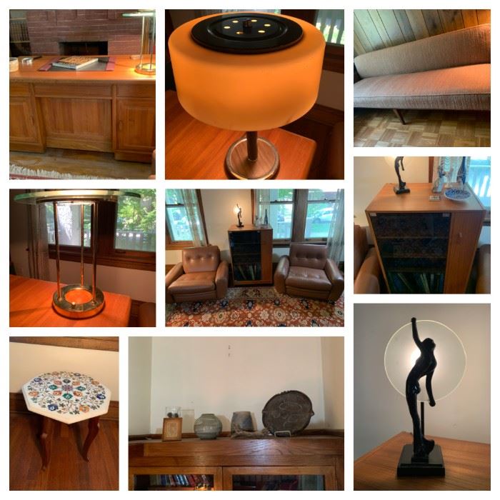 Don’t miss these amazing items from a clean house! Lovely Vintage: art deco lamps, MCM furniture, rugs, and a collection of elegant vessels in glass, stoneware to vintage Pyrex, dishware and more. Tools, tool boxes, luggage, books, china set, furs, gardening equipment, pots and a vintage sled and a Radio Flyer wagon. Even a baby grand piano and a Pfaff 130 Sewing machine!