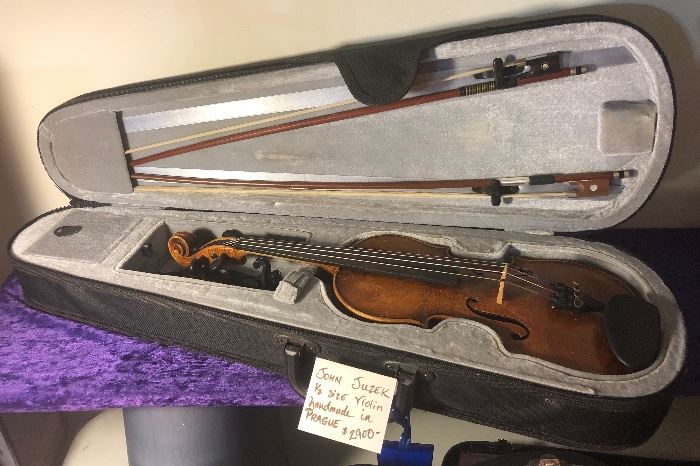 Sherl & Roth violin John Juzek (made in Prague) 1/2 violin Jackson Guldan violin John Juzek (made in Prague) 7/8 violin John Juzek (made in Germany) violin 2013 Mercedes GL350 Bluetec V6 Turbo Diesel 3.0L 2006 Hummer H3 3.5 Inline 5 cylinder 1988 Cheetah 17 ft boat w/trailer Indian Arrowhead collection Outdoor sheds (4) assorted sizes (Black & Decker, Suncast) Outdoor storage box Wrought iron patio table, 4 chairs Wrought iron fire pit Outdoor bench, Glider Ornamental jardinaire planter English Art Deco buffet English Art Deco Grandfather clock Rustic pine dresser w/mirror Matching rustic pine chest of drawers (2) Large...