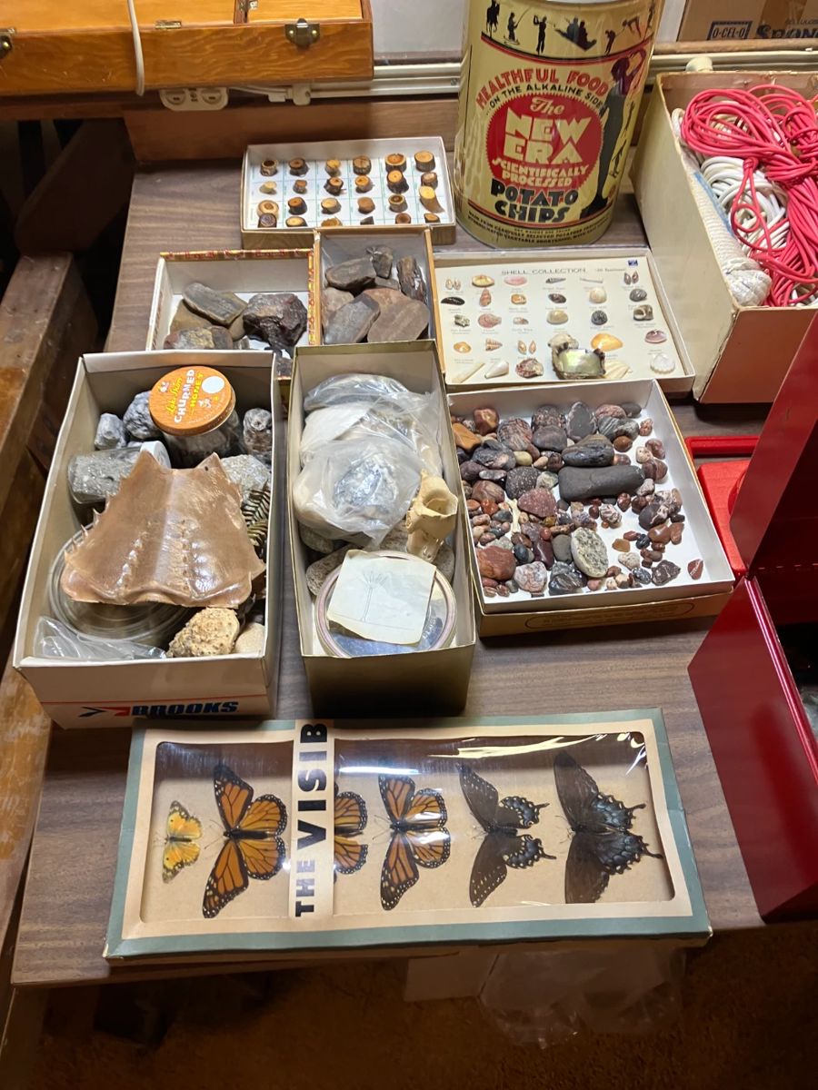 Huge estate sale filled with years of collecting something for everyone! rocks geology snowblower tools antique bicycle jewelry watches radios yard tools yard decor gas cans tents antique furniture lamps chairs wall decor heaters fans belt buckle collection large camera collection drift wood precious gems insect collection seashell collection mini fridge kayak boat motor several OARS fishing equipment vacuum shampooer large collection of board games books pots and pans kitchenware antique crystal lamps pottery vases artwork clothing large airplane plane collection large scale mid century modern medevial knights wall decor records perfume and perfume bottles and so much more This...