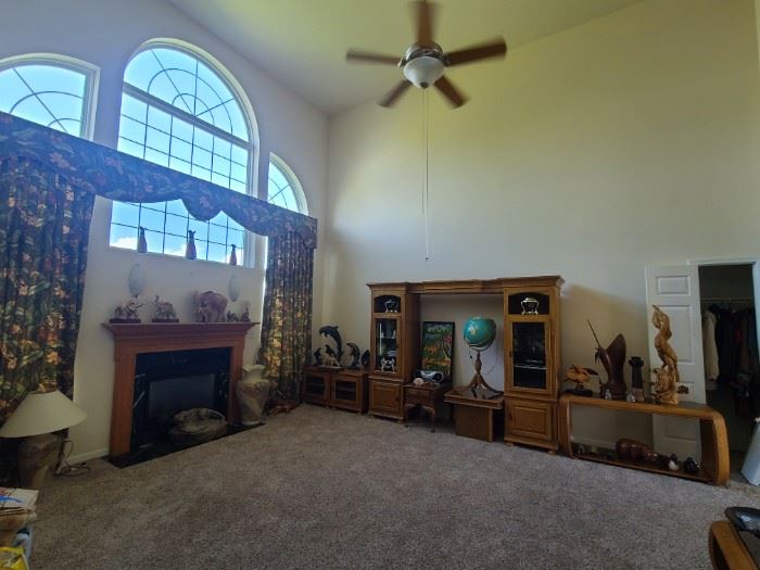 This Sale Offers Great FINE Furniture* Sculptures* Art* Much more** Everything Must Go!! Furniture West Indies Bedroom Set with Canopy bed.. "IMPRESSIVE", West Indies Dining Room Set.. "IMPRESSIVE", Large Solid wood Entertainment Center, King Size Ornate Metal Headboard and Box Spring, MCM Crams Political Globe Light, Office Chair, Book Shelves, Lamps, Utility Cart, Night Stands, Heavy Duty Carved Parrot Bench, Oak Office Desk, MCM Office Desk, Glass Top Coffee Table & Wall Table, Kitchen Table with 6 Chairs, Recliner, Bistro Table Two Chairs, MCM Kent Side Table, Work Out Equipment Pilates Rebounder, Elevated Rebounder New in Box, Teeter Hang Ups...