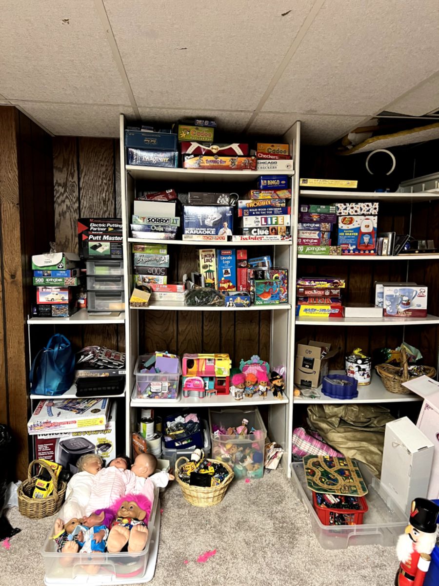 HOME IS PACKED, PLEASE KEEP CHECKING BACK AS WE ARE STILL UNCOVERING ITEMS and WILL BE ADDING MORE PHOTOS! FULL KITCHEN GAMES galore Xbox, gamecube Many collectible /collections. Pez, Beanie Babies, Snow Globes, Barbies, Flamingos, Gnomes Dining Table Sectional sofa TONS of clothing Small/Medium (many new with tags, Tons of Shoes size 7, fur coats Purses Jewelry Paper goods, party items Collection for every holiday, Halloween, Christmas, New Years, 4th of July, Valentines Dressers, Desks White Board many outdoor decor Bird cage many new Amazon purchased items, Grill, hammock, chairs.... Tvs coffee table Tom Ford parfum Luggage vaccuum(s) Folding chairs...