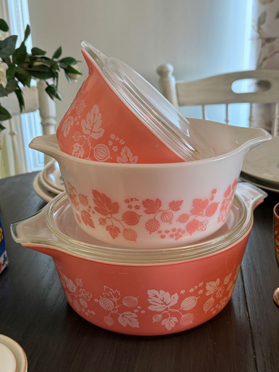 There are some very lovely items at this sale! Definitely more items than are pictured you really should come and shop in Lemont! There is a beautiful Mid Century Modern ( MCM ) Kent Coffey Perspecta bedroom set including Long dresser chest of drawers and two end tables, a very pretty set of Pyrex Gooseberry pink and white casserole dishes, a nice stand up freezer, there is a bar that is in like new condition, lots of beautiful Lladros, vintage Tupperware, Corningware, some carnival glass, a shabby chic style kitchen table set and console table, some decent luggage and amazing...