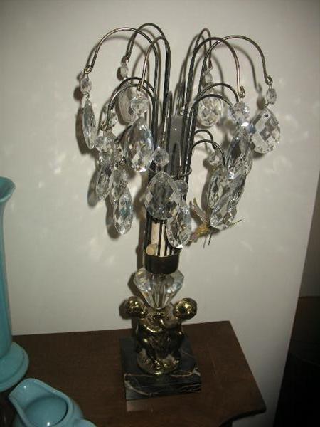 Another Vintage Sassie Sale to Start 2011 Right!!! 12Piece Turquoise West Virginia Beverage Set circa 1960's,Pair of 1950's Crystal Cherub Lamps,Multi Color Venetian Glass Clown Decanter with Label,1940's Solid Wood Drum Table Carved Pedestal Leather Inlay top with glass and it turns,Pair of 1940's Solid Wood Step End Tables Leather Inlay top with glass,Traditional Meets Modern Romweber Dining Room Table 6chairs,3 leaves,pads. Table top is Burl Wood with Brass inlay has a split pedestal, Chairs are Caned back.Romweber Beveled Glass Marble Paneled China/Breakfront Cabinet,Romweber Marble Paneled Sideboard with Storage.50's Contemporary Sofa By Steiger,Chicago Il,Hand Loomed Vibrant color Rug,Harkerware China Set,...