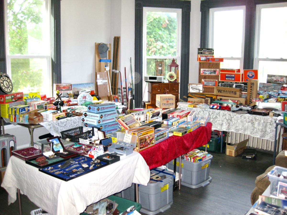 Massive Train Collection! 1 room dedicate to all train related items: Lionel Williams AHM Athearn Engines, cars, tracks, transformers, decals, train ephemera, clocks, manuals, models and more Illinois Central collectables Die cast cars Sports stuff: Jordan, Bulls, Bears Bow and Arrows, vintage Some costume jewelry Cool vintage leather tooled belts and lots of fun belt buckles Vintage electronics: receivers, amps, equalizers, vhs and dvd players SO MANY!!!! DVD's, CD's, VHS tapes, cassette tapes, all together, theres got to be over a thousand or more! Vintage Halloween and Christmas Nice oak roll top desk Nice oak king bed frame, dresser and...