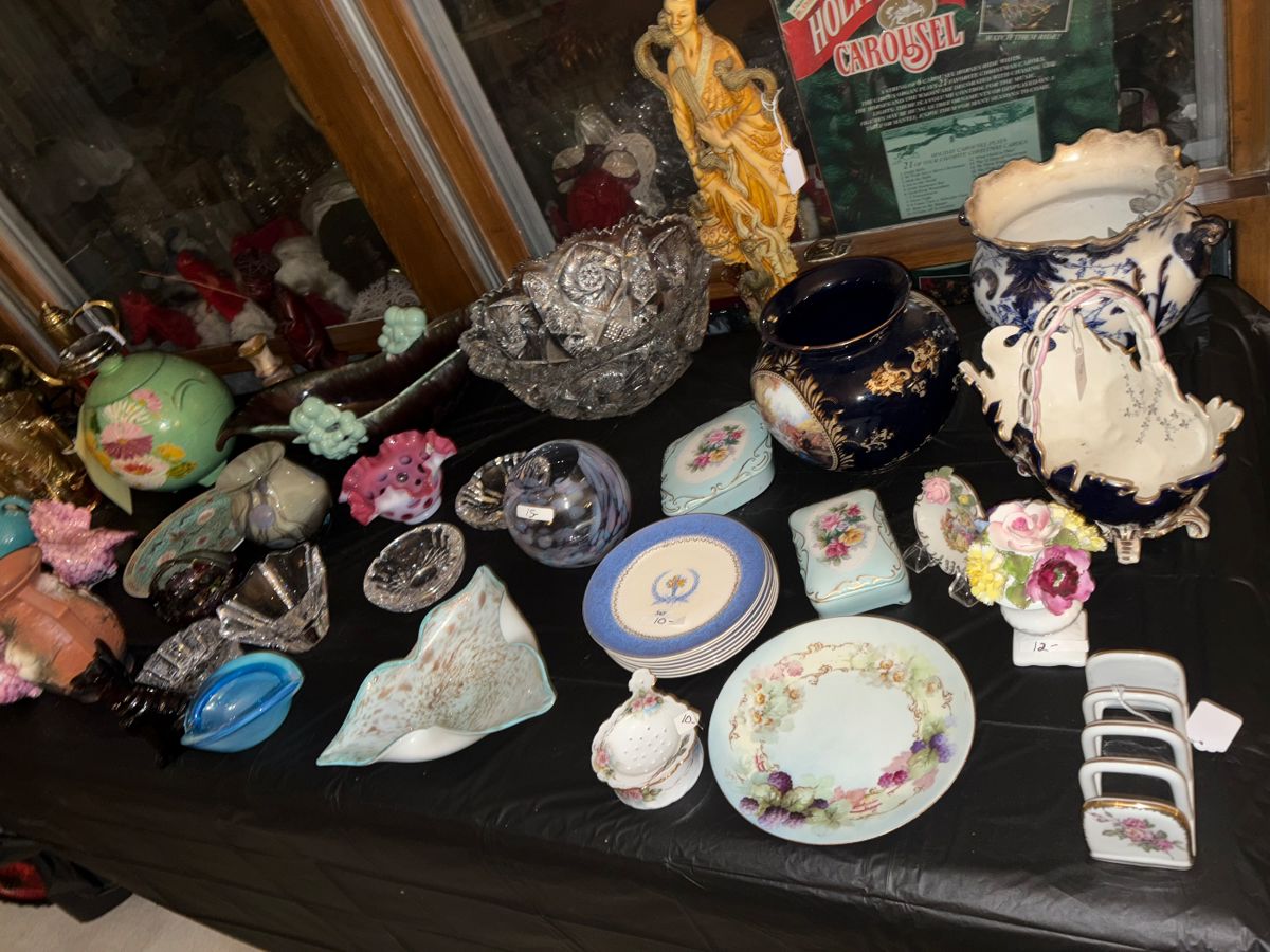 We are packed full restocked and ready for fifty percent off Thursday fri saturday, mid century modern signature pieces, Antique mahogany dining set in perfect condition, toy train, blue sectional sofa, crystal, Waterford, Orrefors, sworsky, China sets, kitchenwares brand new in box, records, cds, dvds, electronics, jewelry, double pyramid curio by century furniture, bedroom sets, kitchen set, 1950s Booth, mid century modern settee set, midcentury modern cocktail tables, wall mirrors, artwork, mid century modern lamps, hanging lamps, apparel and accessories, so much more fifty percent off holiday shopping
