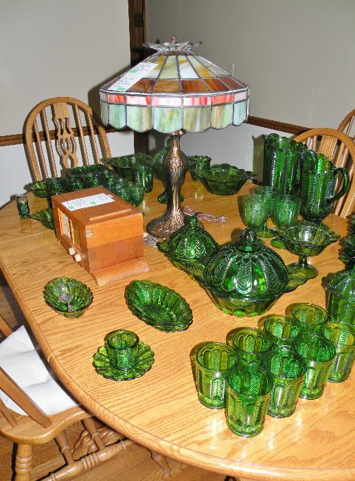 This beautiful house in Ironwood Country Club is filled with treasures. Solid oak claw-foot table and 6 chairs from Whitacre's, Solid oak pub table and 2 stools from Whitacre's, Leather sofa and loveseat, Gorham Sterling Silver flatware for 12 plus many serving pieces in the "Strasbourg" pattern, Johnson Brothers Snow White Regency china for 12, Keurig brewer, Queen bedroom suite by Blackhawk Furniture. Tons of built-in storage in a wall unit headboard. Cedar lined compartment in the armoire. Awesome!, Handbags by Vera Bradley, Coach, Kate Spade, etc, Haier Beverage Center, Electric Fireplace/48" TV console w/remote, 3 solid oak bar chairs...