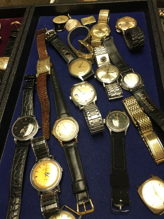 A large estate of 500 vintage watches including many pocket watches, wrist watches, gold, gold filled silver, etc. 2 vintage Rolex's, Tiffany, Longines, Omega, Illinois, Waltham, etc.