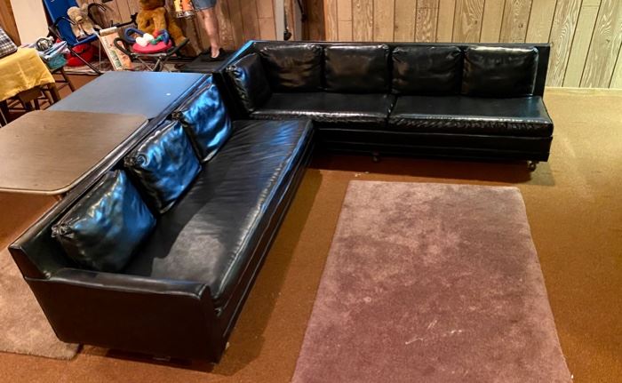 This family is moving to Florida permanently and leaving most everything for us to find a new home for! Many fun and cool things on 3 floors of this beautiful townhome (which is also for sale!) Some MCM - fun black leather 2 piece sectional sofa by Marden / Chicago and matching arm chairs Great MCM - Chrome and glass tables MCM Expanding bench, needs some TLC - Brown Saltman? Chrome and Lucite magazine rack, in the style of Milo Baughman Artist Zivko Zic - Oil on board - Zic 1924-2015, born in Yugoslavia Fantastic man cave! Harley Davidson soft...