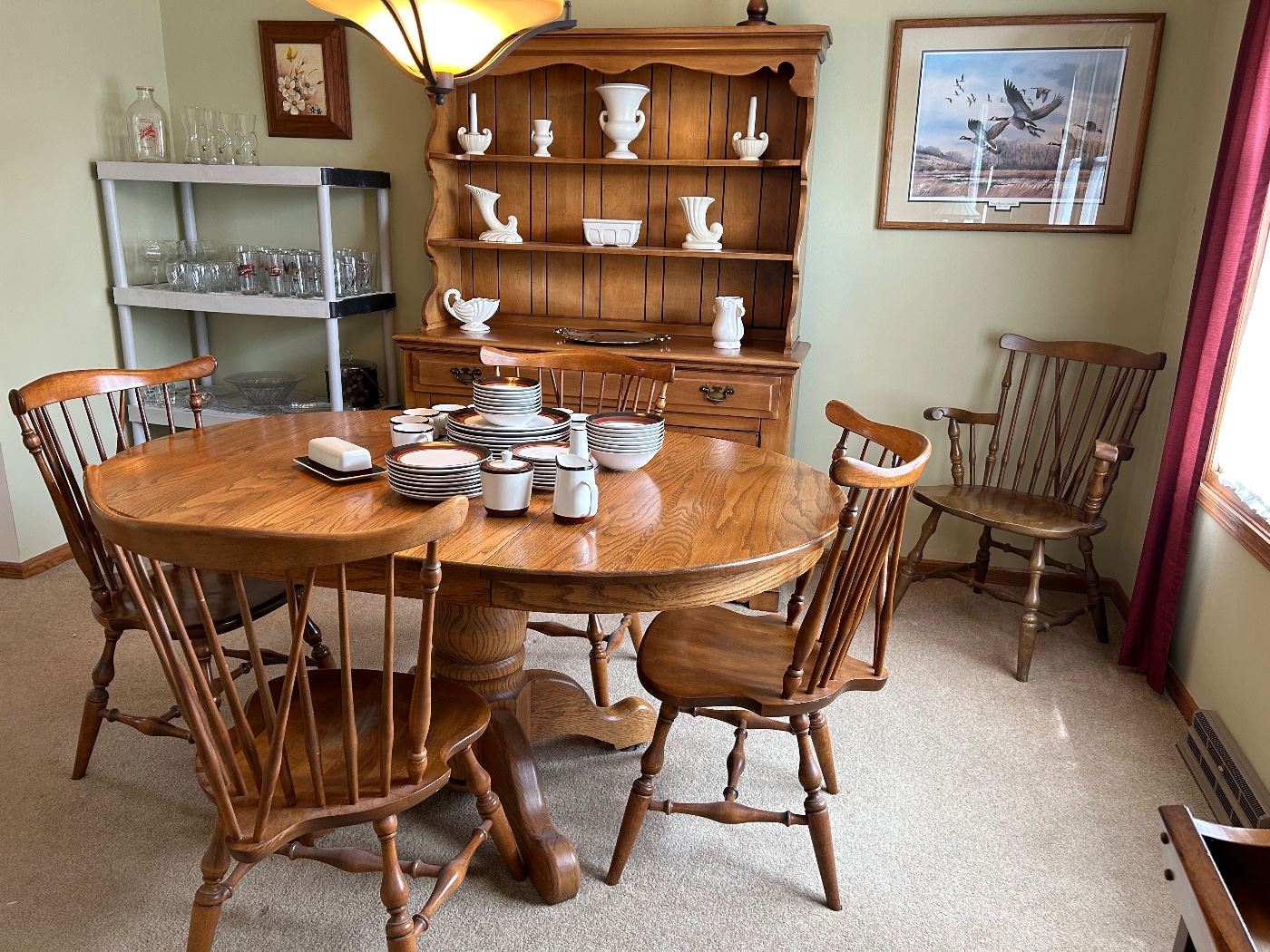 So here's a pretty extensive list of treasures for sale. Picnic Table Style Kitchen Table Dry Sink Planter Kitchen Cart Glass Casserole Dishes Wooden Dishes Melon Water Pitcher Monte Verde Mann Hand Painted Celery Water Pitcher Corning Ware Blue Cornflower Casseroles with Lid Pyrex Mixing Bowls Anchor Hocking Orange Glasses Assorted Plates Cooling Racks Pots and Pans Enamel Dishes Muffin Tins Apples Sign Oranges Sign Del Monte Tins Wallace Silverware Cutting Boards Rival Crockpot Glass Tea Pot Red Canister Set Red Wall Clock Mainstays Coffee Maker Salton Grinder Stainless Steel Carafes Kenmore 4 Slice Toaster Cookbooks Glass Canister Set Houdini...