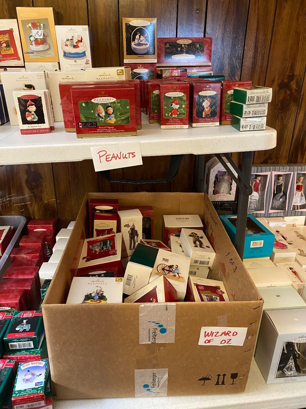 This sale is Christmas Hallmark Ornament and Plushie heaven. The owner was an avid Hallmark collector for 50 years! She was a founding member of the popular Candlestick Lane. There are 4000+ ornaments! That is not a typo! There are so many and of almost every imaginable genre that we’re not sure if we can get them all out and displayed! There is so much more at this sale from nice kitchen housewares, vintage clothing, Illini decanters, costume jewelry, matching recliners, end tables, dining room dropleaf table/chairs and matching hutch to antique and mid century collectibles and housewares. There is...