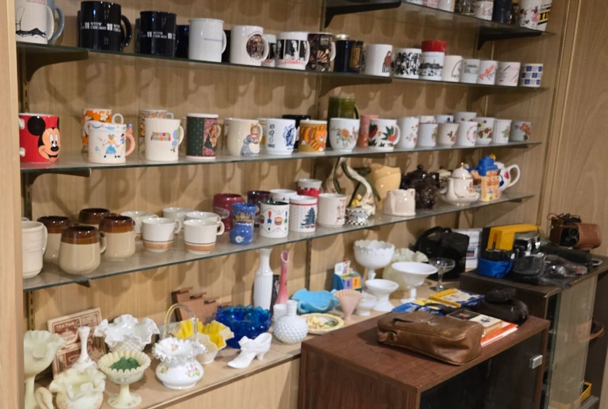 Vintage dresser set 1 Queen bedframe and mattress, 1 double bedframe and mattress Multiple small shelving units and cabinets Microwave, New Freezer Vintage kitchen table, and four chairs, Four woven style kitchen chairs Vintage milk glass items, multiple patterns, very unique items, lamps, vases, dish sets, pitchers and glasses, ash trays, lots more Crystal dishes, glasses, stoneware sets, Corningware (multiple designs) Suitcase Victrola Teapots, teacups, mugs Vintage cameras, Sony stereo equipment Tons of costume jewelry, earrings, bracelets, necklaces, pins and more Pewter collectors plates, other plates Small kitchen appliances, bedding, linens, wine racks Lots of miscellaneous, mirrors, picture frames, photo...