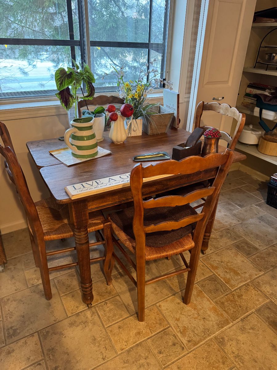 A great mix of old and new in this estate sale including antiques, both furniture and smalls. A good selection of lamps, dishes, pots, pans, linens, wrought iron patio set, artwork, Christmas items, and lots more. One on over and check it out. All of it is priced to sell quickly!