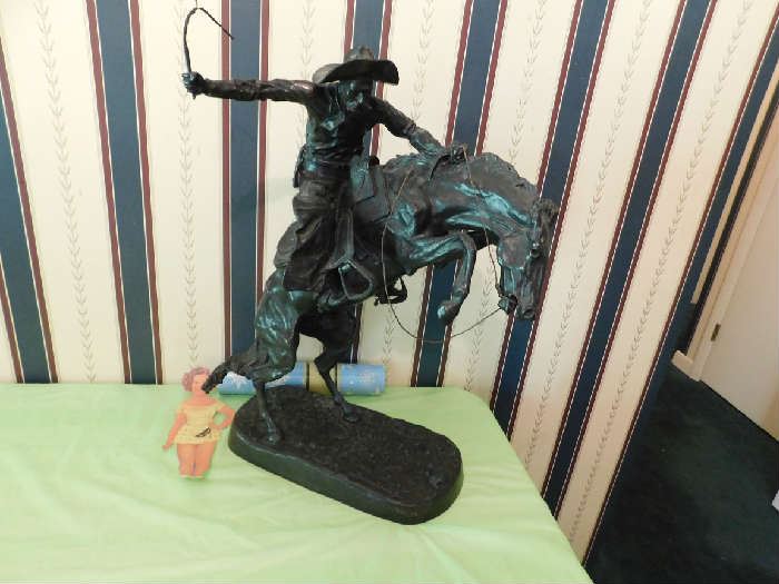 THIS IS A FULL HOUSE ESTATE SALE. LOTS OF NEAT ITEMS. GOOD SALE FOR E-BAYERS, RESELLERS AND SOMEONE LOOKING A TREASURE. DON'T MISS THIS SALE. HERE ARE SOME ITEMS FOR SALE: MORE COME AS WE WORK ON SALE FREDERIC REMINGTON TROOPER OF THE PLAINS FIGURINE, FREDERIC REMINGTON BRONCO BUSTER FIGURINE, THOMASVILLE CHINA CABINET, REMINGTON 870 12 GA. PUMP SHOTGUN, REMINGTON 870 MAGNUM 12 GA. PUMP GUN, STRUM RUGER .22 CAL. PISTOL WITH LEATHER HOLSTER, SILVER COINS, TABLE AND 4 CHAIRS, CAST IRON SKILLETS, WESTMORELAND, COUCH, RECLINERS, CONFERENCE TABLE, OFFICE TABLE, CHEST OF DRAWERS, DRESSER AND MIRROR, QUEEN BED, ANTIQUE SOFA...