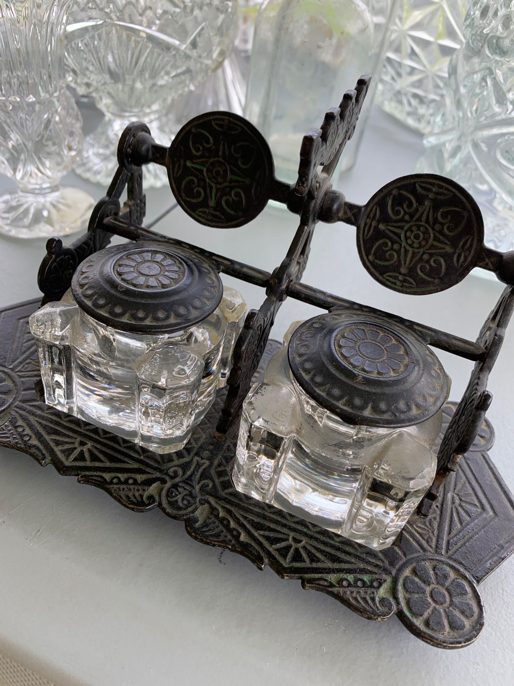 This sale is going to be fun! We are unpacking box after box packed away in the barn and last opened in 2008! * Dual Electric Reclining Sofa in a soft Grey * Household light fixtures, chandeliers, Mantles, cabinetry, ceiling fans(new in box), * Antique Dressers, secretary, rocking chair and other pieces of Antique Furniture, Antique photos, picture frames, Antique photo albums from late 1800’s * Vintage and Antique Costume Jewelry, Lang, Napier, Monet, Gerry’s, Coro, Krementz, Sarah Cov and more. Retro Enamel Earrings, Art Deco, Sterling Silver brooches. Lots of Japan, Mexico, Austria, Germany etc. * BRAND NEW luxury...