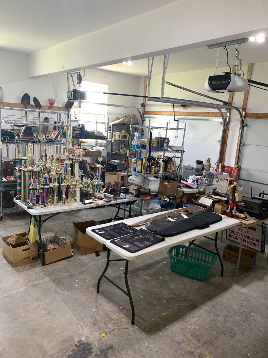 APPLIANCES & FURNITURE: GE UPRIGHT FREEZER – VIZIO 42 IN SMART TV w/ REMOTE – NICE ENTERTAINMENT CENTER w/ ADJ SHELVES – SEVERAL VERY NICE BOOKSHELVES – PANASONIC VCR w/ REMOTE – NICE MATCHING NIGHT & LAMP STANDS – HALL TABLE – CLEAN KING SIZE BED w/ ARTISTIC TALL HEAD BOARD & FRAME, COMPLETE – EMERSON APARTMENT SIZE REFRIGERATOR – NICE WHITE CUPBOARD w/ SHELVES & DOORS – CLEAN 24" X 24" FULL BUTCHER BLOCK TABLE – WHITE TABLE w/ 4 WINDSOR BACK CHAIRS – 3 METAL FRAME HI BACK BAR STOOLS – DINING TABLE w/ 2 LEAVES, 6 WINDSOR...